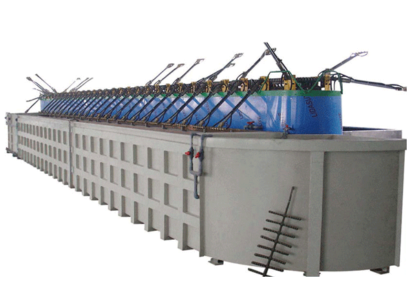 連續不間斷的水平運行,升降靠水平動力順坡而行,結構簡單、價格低廉;無需程序(xù)控製,操作簡便;無空工位、效率高、可無極調速,以調節工件的受鍍時間和產量;可緩速跨越某些工藝槽,實現一機多工藝流程;鏈條(tiáo)鬆弛後,可采用縮節的方法簡單處理,適用於中、小(xiǎo)型工件的批量掛鍍。
